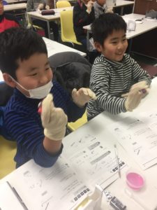 少し長めの勉強会にしてみましたが、しっかり集中して勉強できました。小学部はほとんどの子が宿題完成!終わった子は塾のテキストへと進んでいきました。子どもたちが集中して勉強しているところに・・・明かりを消して、「メリークリスマ~ス!」と塾長サンタと瞬サンタが登場。背後の職員室から突然飛び出したので、みんなびっくりしていましたが顔を見合わせて大笑い( *´艸`) 楽しそうにお菓子のプレゼントをもらっていました。